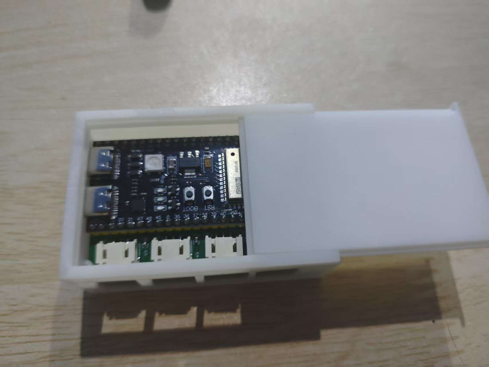Second, I modelled a container to put the devices in. After that, I printed these things out.