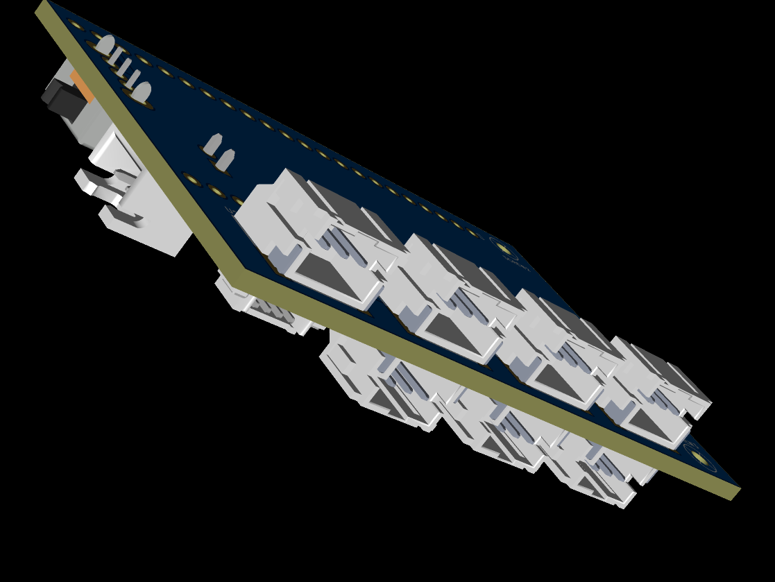 First of all, I designed an extension board to allow the ESP32 and the motors to communicate. There are 7 interfaces on the board that connect to 7 motors. The 7 motors correspond to 7 directions on the cap.